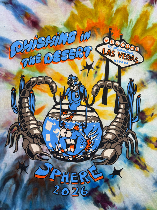 Fishing in the Desert Sphere tie-dye t-shirt